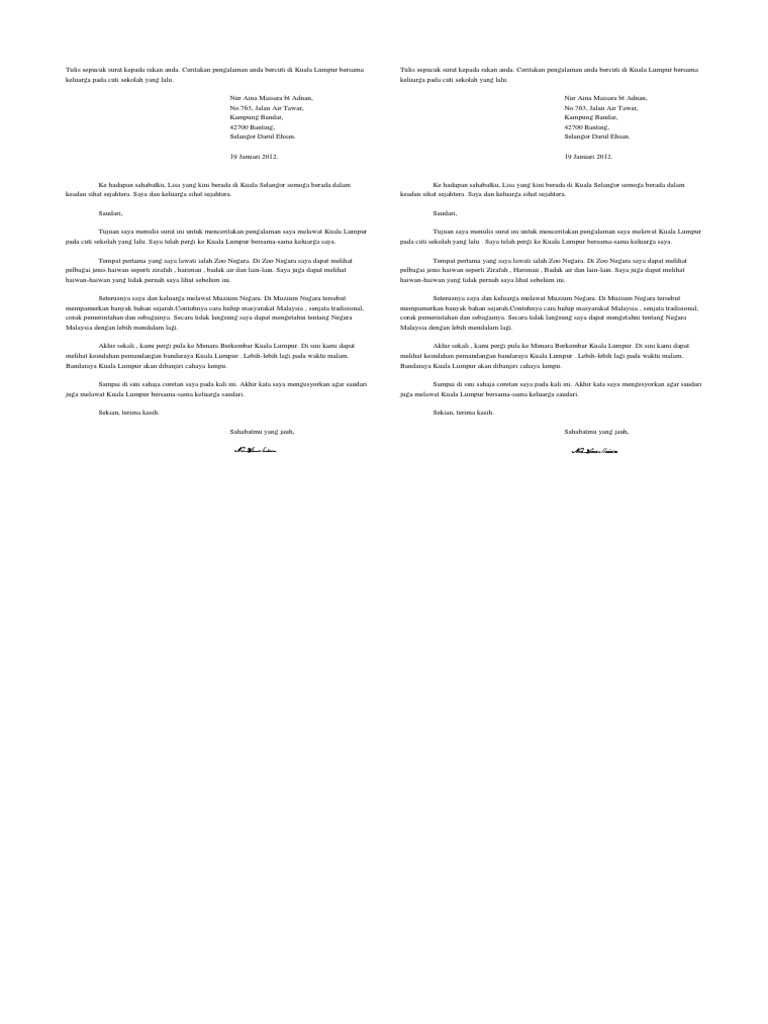 Surat Kiriman Tidak Rasmi Pengalaman Bercuti
